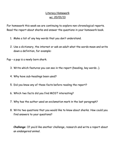 Non chronological report homework. Essays are the most common type of academic paper and sometimes you are assigned just too many of them. Non-chronological report homework- finding information from the text. 11th October 2013.